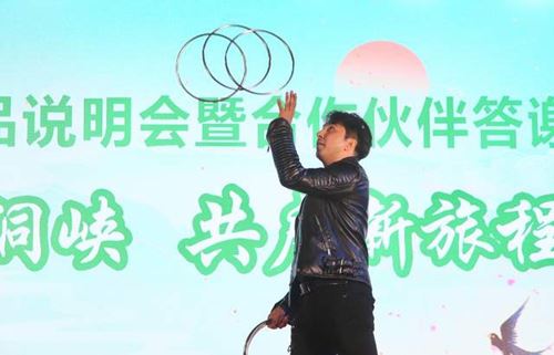 百洞峡营销中心韩雨峰在新春产品介绍时,推出的“老年市场休闲游”、“单位团建体验游”、“家庭亲子研学游”三大产品线,精准定位不同市场需求。并详细介绍了新春以及三八妇女节引客入阳的奖励政策,引得旅行社同行们一片叫好声。