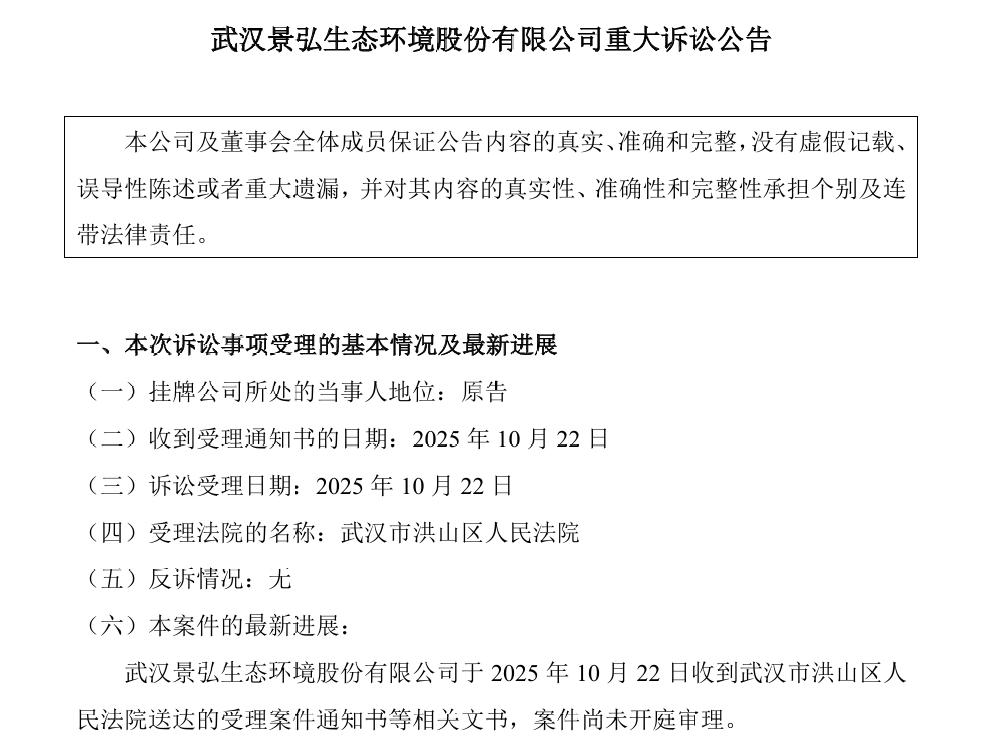 2025年10月23日,景弘环境突然在全国股转系统网站发布了一则《重大诉讼公告》。