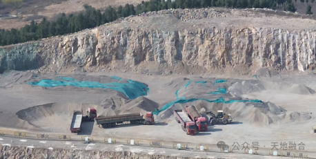 环境调研员使用航拍看见,曲阜金鲁城建材有限公司矿区内部的情况,现场有数十台大型挖掘机、破碎机,铲车在作业,在装车时没有采取洒水车、雾炮等降尘措施。露天作业,大量物料露天存放未苫盖,空气中布满大量粉尘,周围的树木都被蒙上厚厚的一层粉尘。只要有风,车辆来往通过时粉尘便随风四处飘散,周边区域瞬间被灰尘笼罩,并采取有效环保措施防止扬尘。